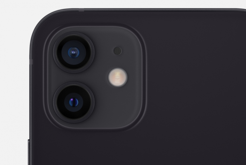 蘋果在發表會中也花了很多時間介紹 iPhone 12 的相機。在鏡頭數量上,iPhone 12 mini 以及 iPhone 12 維持雙鏡頭主相機的配置,分別為 1200 萬畫素標準鏡頭以及 1200 萬畫素超廣角鏡頭,標準鏡頭支援 F1.6 光圈、26mm 等效焦距、Dual Pixel 相位差對焦以及 OIS,並採用 7 枚鏡片組成,強調能提供更好畫質;超廣角鏡頭則有 120 度廣角(13mm 等效焦距),支援 F2.4 光圈以及 5 枚鏡片。